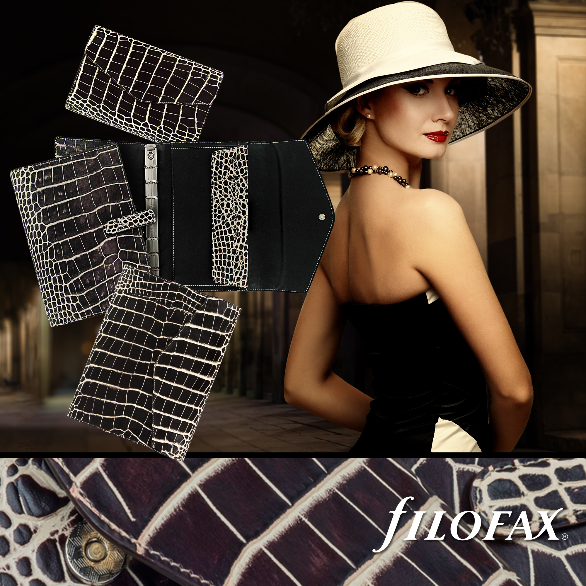 A régi idők stílusa által inspirált és krokodil mintás deluxe kézi kialakítású bőr borítóval érkezik a Filofax Exotic organiser. A klasszikus pénztárcák mintájára tervezett Compact organiser belső zsebekkel, tolltartóval felszerelve kapható.