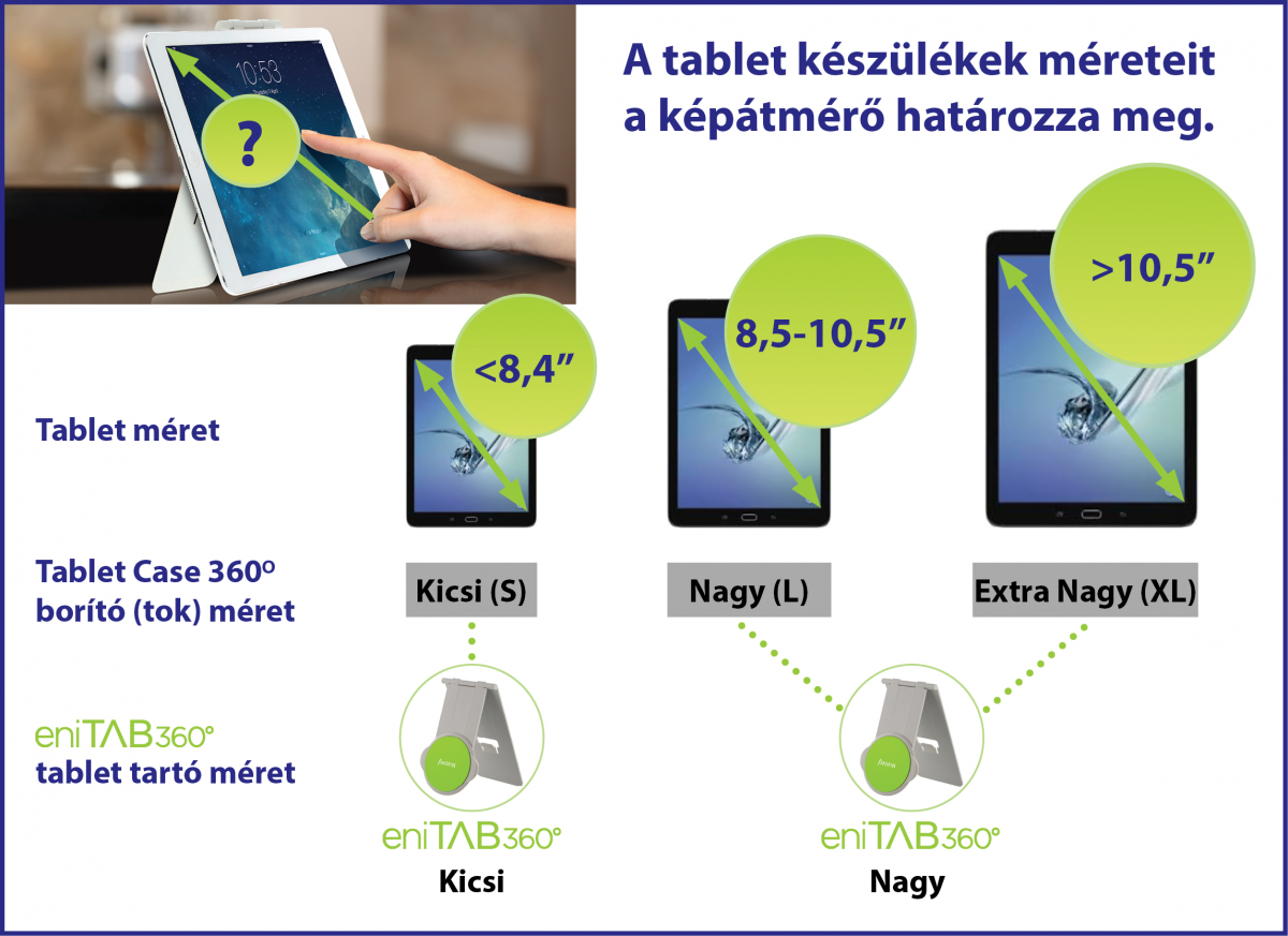 eniTAB360 univerzális (típus független) tablet tok + tartó hatalmas méret- és színválasztékban.
