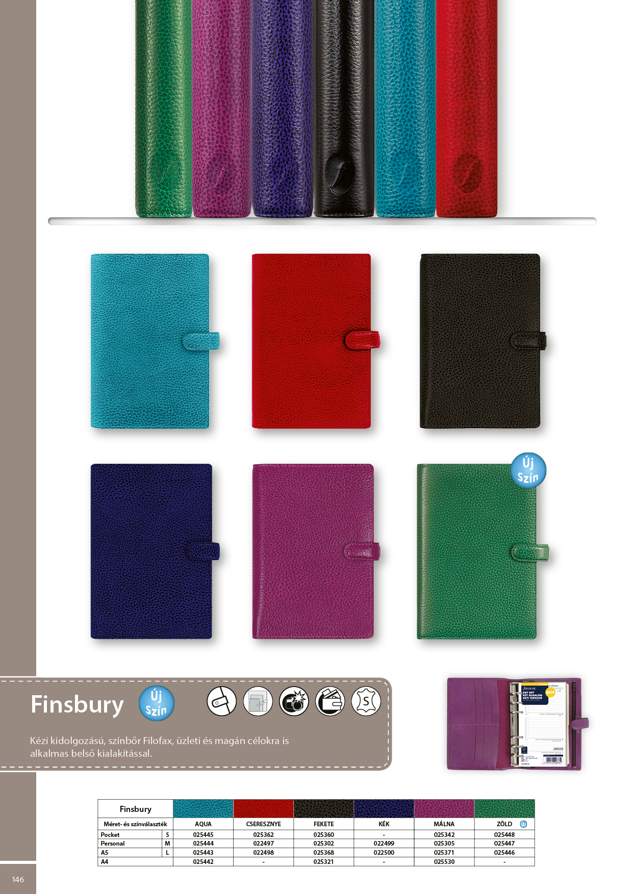 Tündököljön a divatszínek széles skálájában! A Finsbury Filofaxok között az élénk, divatos árnyalatokat kedvelők csakúgy megtalálhatják kedvencüket, mint a visszafogottabb darabokat keresők. A Finsbury Filofax diszkréten strukturált bőr borítóval és praktikus belső kialakítással készült. Ideális választás üzleti vagy szabadidős tervezéséhez.