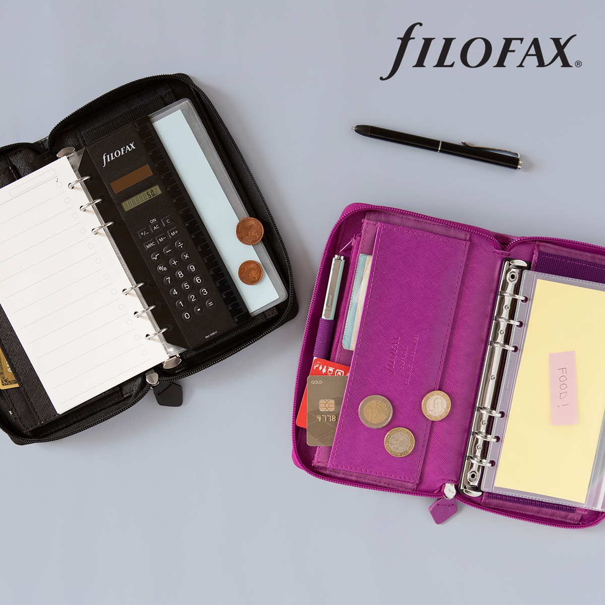 Három az egyben! Soha nem volt ennyire igaz a "három az egyben" jelző egy termékre, mint a Saffiano Compact Zip Filofaxok esetében. A Saffiano Compact Zip egy gyönyörű, selymes, bőrhatású borítóval készült gyűrűs kalendárium. De a kivehető gyűrűs szerkezetnek és a rengeteg kártyatartónak és belső zsebnek köszönhetően egy pénztárca vagy akár egy kis kézitáska is. A mobil telefon, az apró- és papír pénz, az okmányok jól elférnek a jegyzetek és napi teendők listája mellett.
