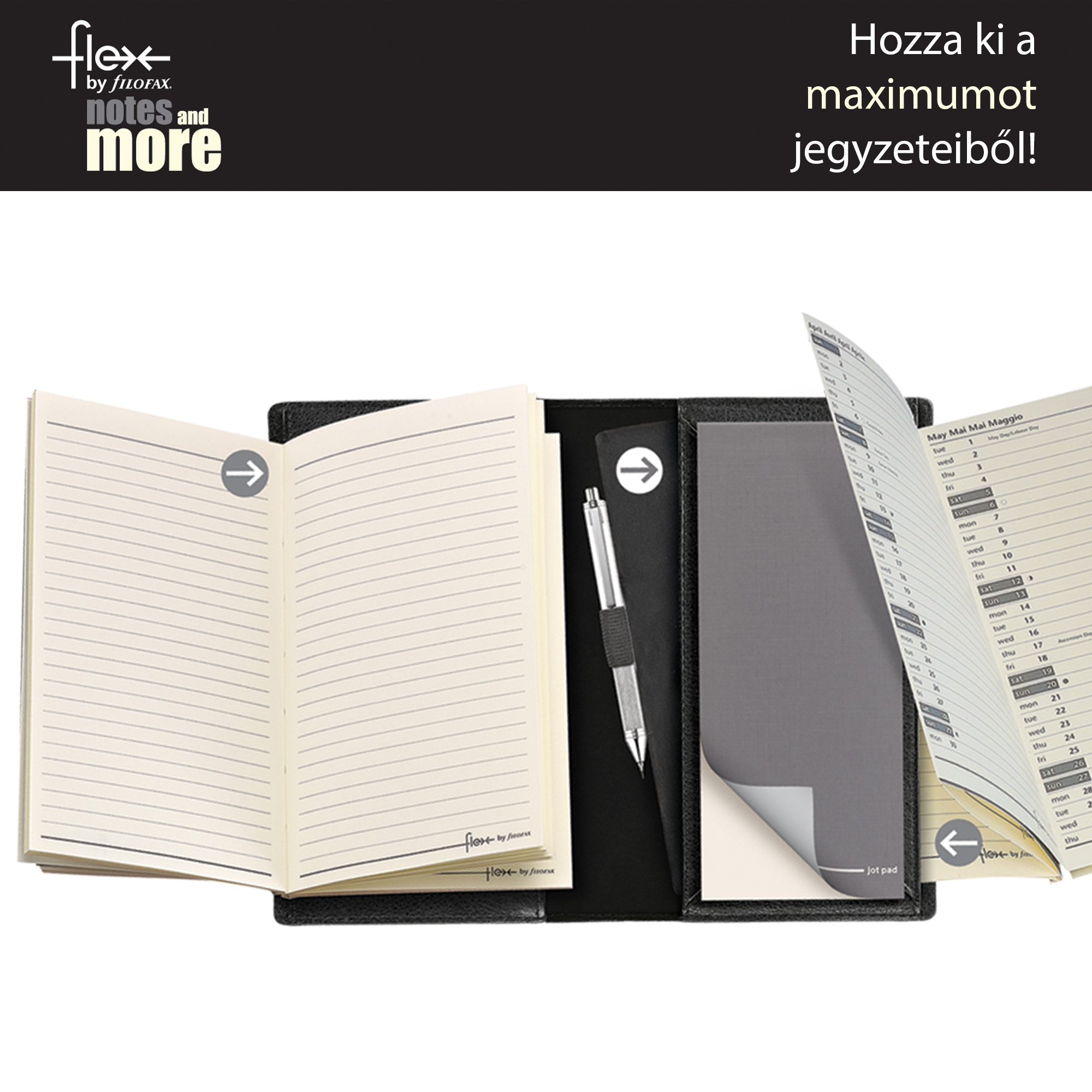 A Flex sorozat a Filofax újdonsága, a mai kor igényeinek tökéletesen megfelelő jegyzet- és vázlatfüzet. És ennél sokkal több, hiszen a Flex egy rendszer, mely számos funkciót foglal magába: