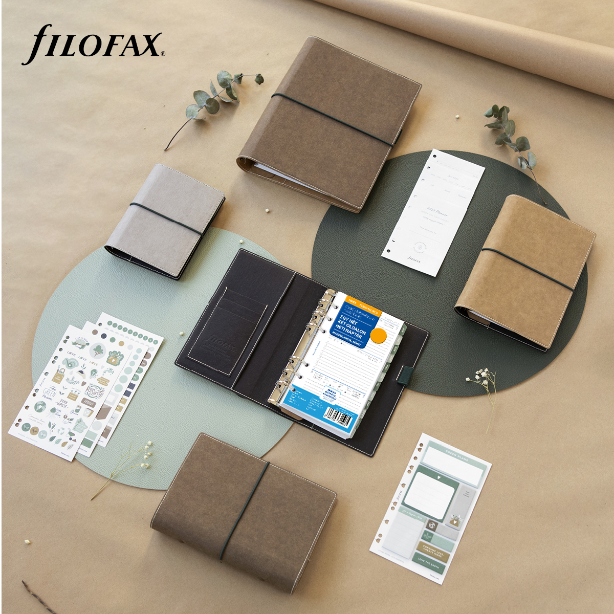 Az Eco Essential Filofaxok vegan, cellulózszálas anyagból, míg a belső lapok újrahasznosított papírból készülnek. A magyar nyelvű naptárbetét FSC papírból készül. Újrahasznosított papírból készült naptárbetétet is rendelhet a kapcsolódó termékek közül. Az Eco Essential termékcsalád matricákat és öntapadó jegyzeteket is tartalmaz, melyeket szintén megtekinthet a kapcsolódó termékek között.
