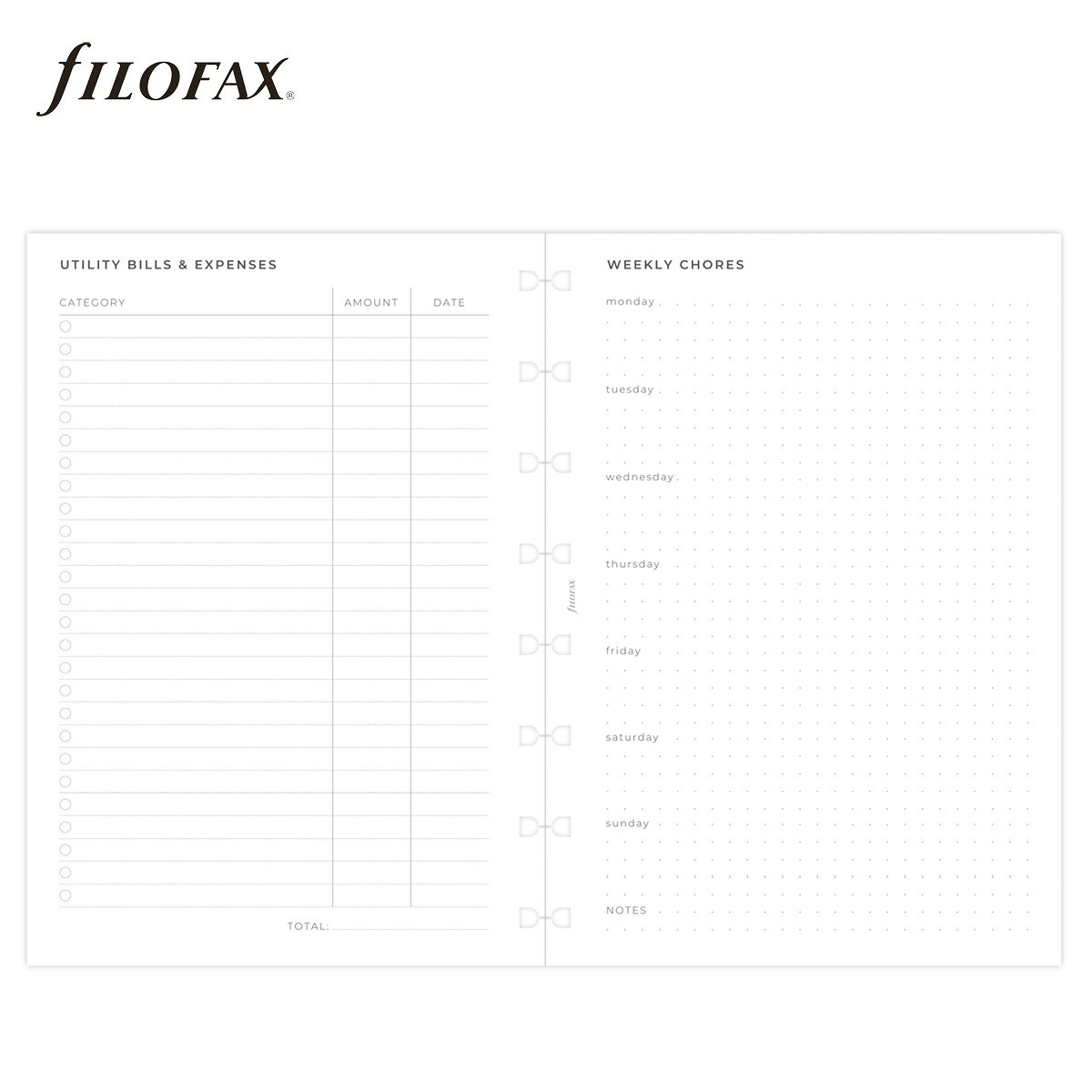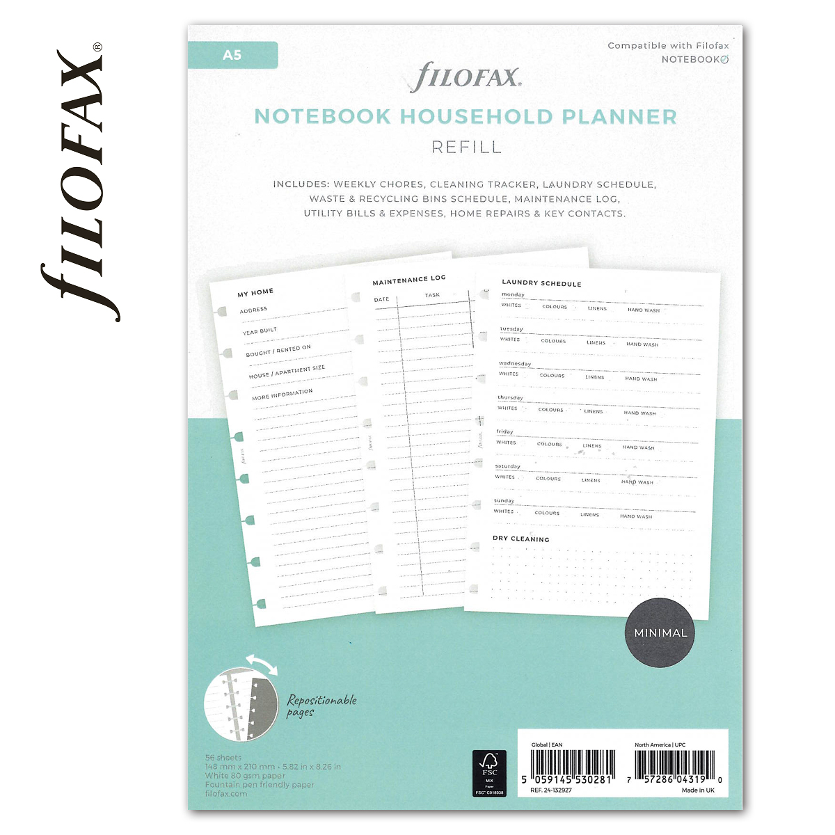 Filofax Notebook Lifestyle tervező Háztartás A5 Minimal Fehér