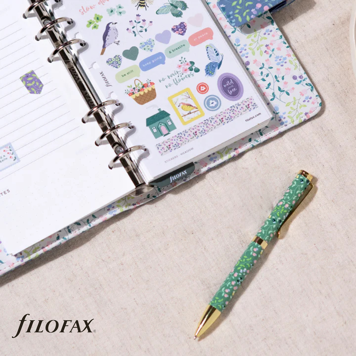 A Meadow kollekció gyönyörű, virágmintás grafikája kellemes hangulatot és nyugodtságot nyújt Önnek a mindennapi használat során. A kollekció gyűrűs kalendáriumokat, Notebook jegyzetfüzetet, matricákat, tollat és számos egyéb hasznos kiegészítőt is tartalmaz. A Meadow Filofaxok bőrhatású, színes borítóval készülnek, melyek használatához a kollekció többi darabja is segítséget nyújt és egy virágos mező hangulatát hozzák el Önnek.