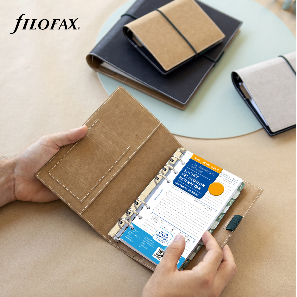 Az Eco Essential Filofaxok vegan, cellulózszálas anyagból, míg a belső lapok újrahasznosított papírból készülnek. A magyar nyelvű naptárbetét FSC papírból készül. Újrahasznosított papírból készült naptárbetétet is rendelhet a kapcsolódó termékek közül. Az Eco Essential termékcsalád matricákat és öntapadó jegyzeteket is tartalmaz, melyeket szintén megtekinthet a kapcsolódó termékek között.
