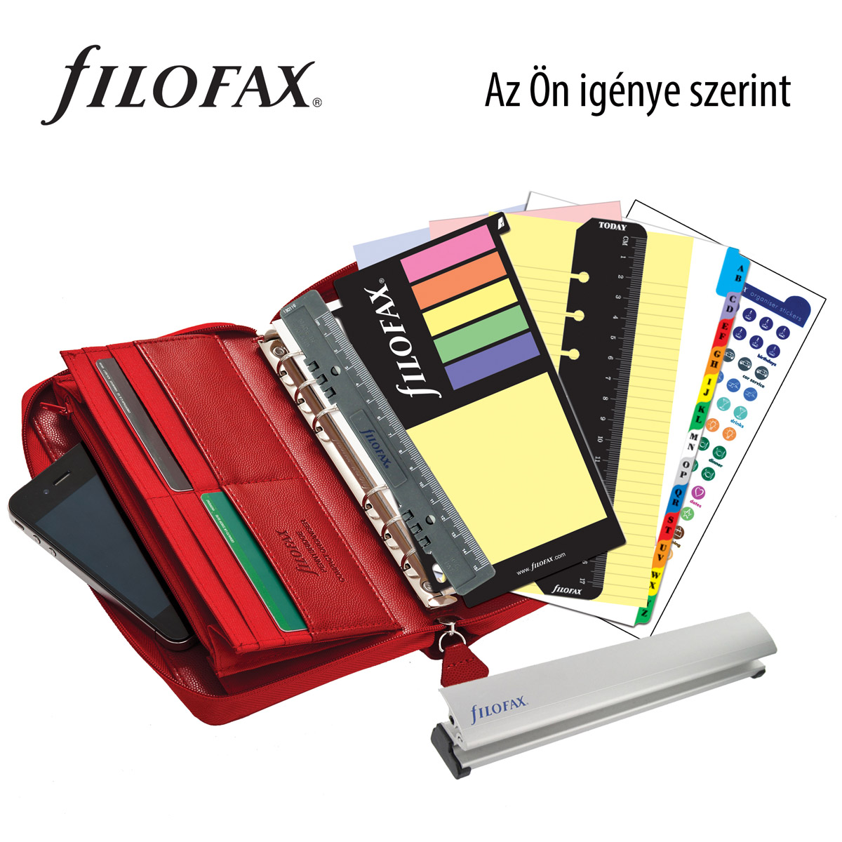 - A Filofax Regiszterek, elválasztó lapok segítségével a jegyzetlapokat témánként is rendezheti. Kérjük, tekintse meg a Filofax Pótlapok menüpontot!