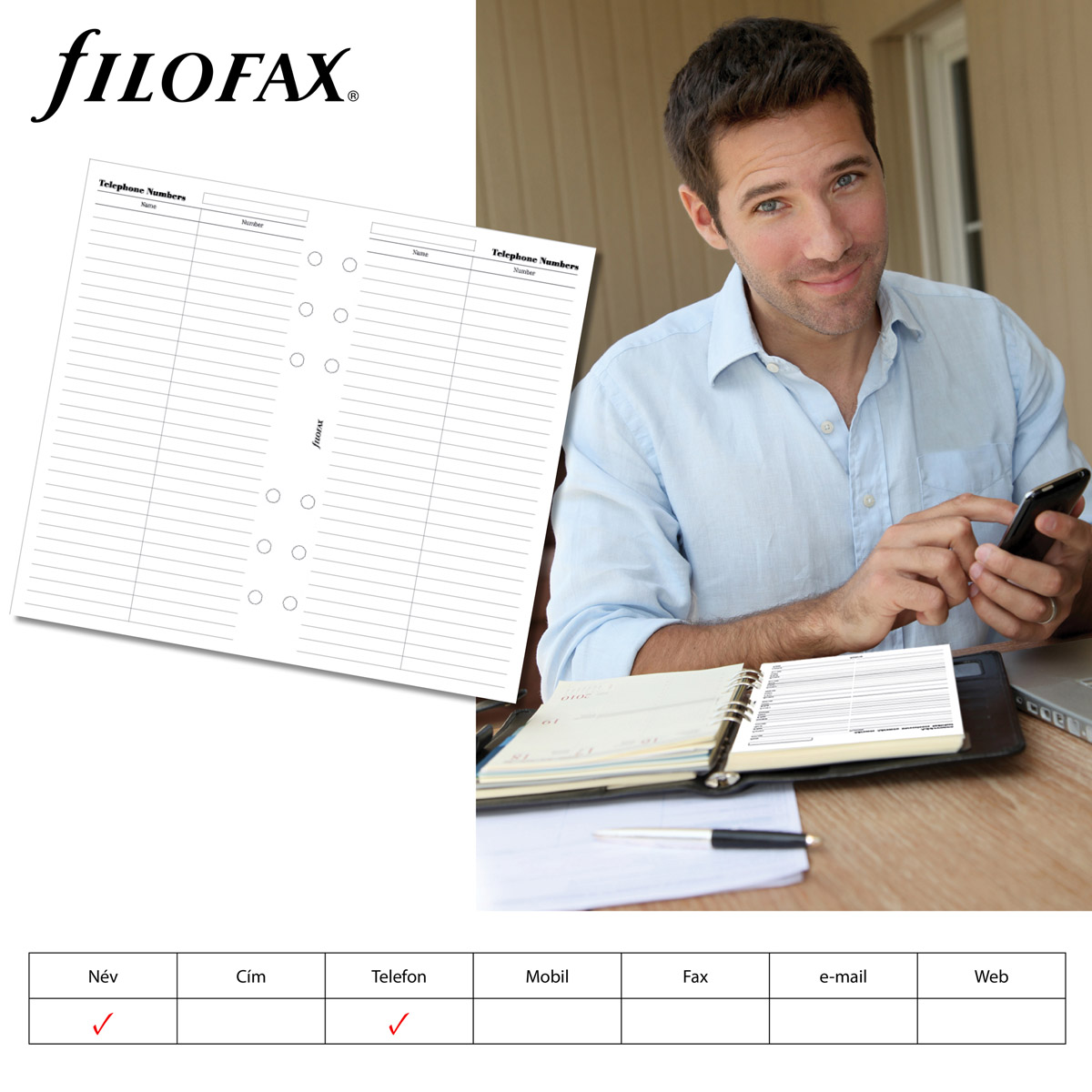 Az évek során összegyűjtött kapcsolatok a legnagyobb értéket képviselik Önnek. Ne hagyja elveszni ezt az értéket egy “apró” műszaki hiba miatt! Használja ki a Filofax széles pótlapválasztékát ezen a téren is! Kontakt lista (nevek, telefonszámok, címek, e-mail címek) számos változatban, minden mérethez.