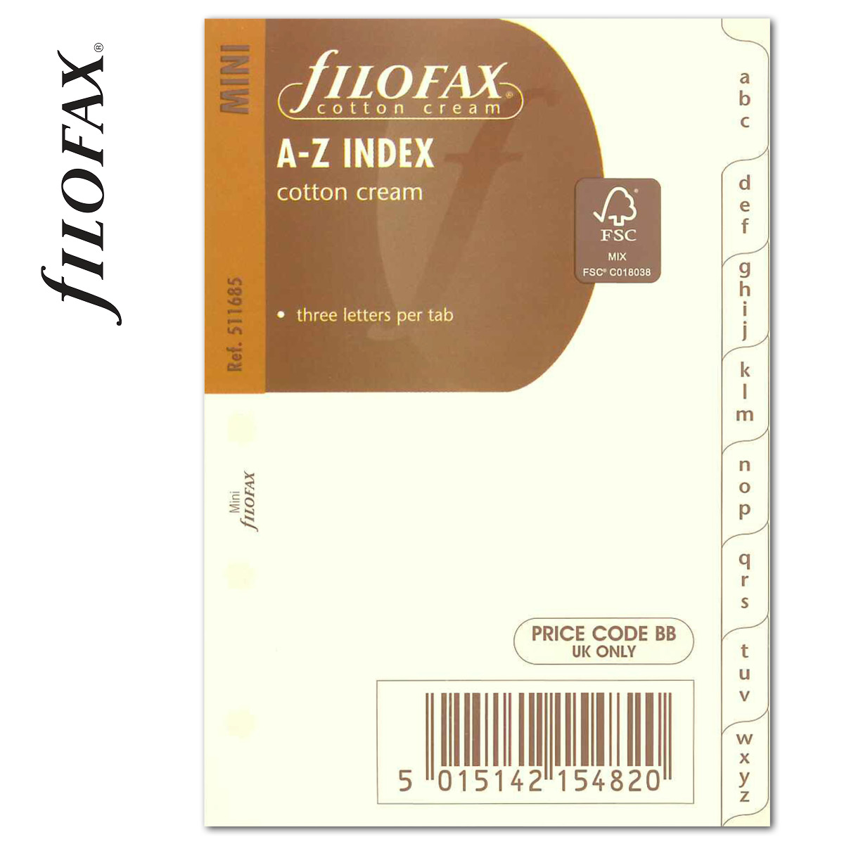 Filofax Kontakt lista regiszter 3 betű / regiszter Mini Krém